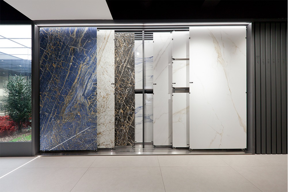 Die Handhabung von großformatigen Keramikplatten stellt besondere logistische Anforderungen. Schwere, empfindliche Exponate müssen sicher präsentiert und für Kunden zugänglich gemacht werden, ohne dass Verletzungsrisiken oder Beschädigungen entstehen.